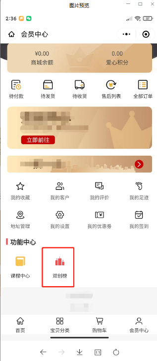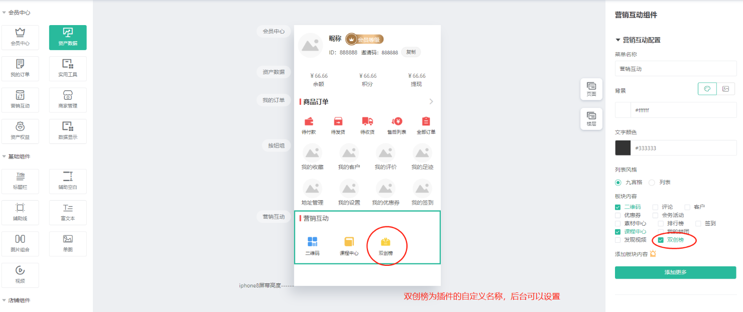 开启插件后,前端会员中心才会显示。如果是使用装修diy自定义装修页面--在会员中心装修页面--营销互动--勾选推排行榜显示