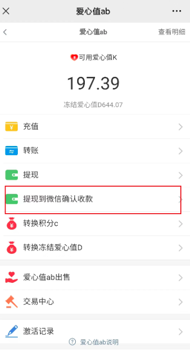 2、爱心值提现